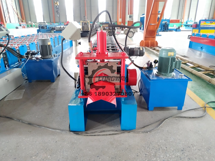 Machine de formage de rouleaux de chapeau de crête de toit en métal pour la toiture pour différents modèles basés sur différentes conceptions ou échantillons du client. C'est un matériau de construction de toit en métal produit par machine, les produits sont largement utilisés comme toit et mur d'usine, entrepôt, garage, gymnase, centre d'exposition.Il présente de nombreux avantages, tels qu'une installation facile, une courte période de construction, beauté, poids léger mais haute résistance.